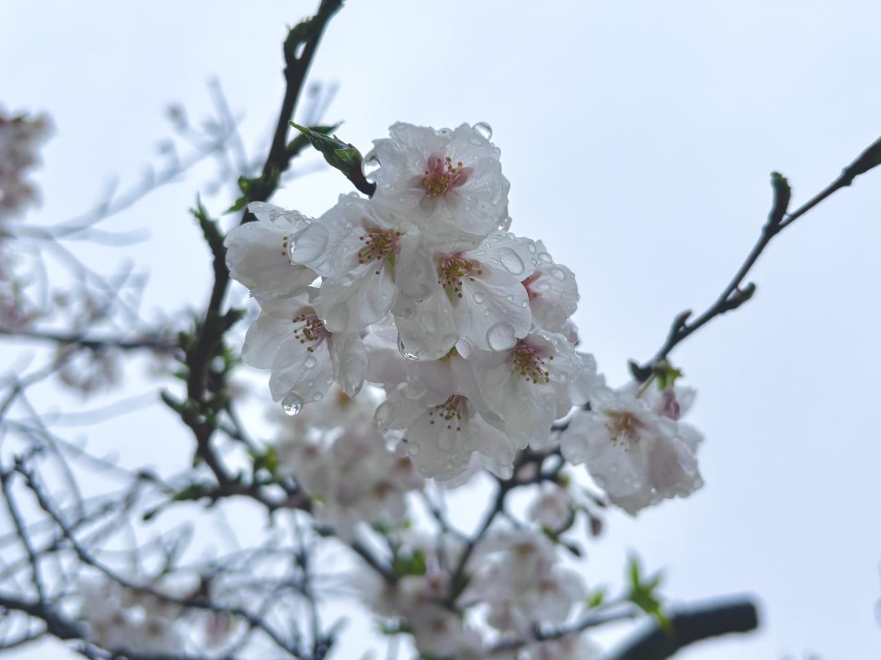 桜の花に雫が滴って綺麗でした