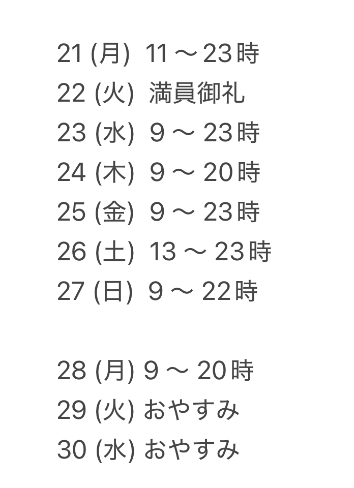 9 〜 23時です♪