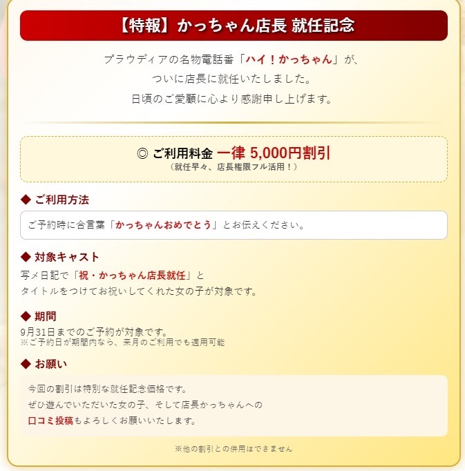 ㊗かっちゃん 店長就任イベント(~9/30)