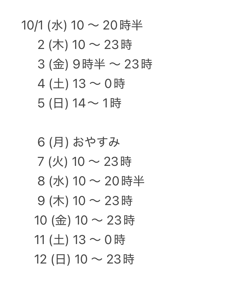 10月前半の、私の出勤です୧( "̮ )୨✧︎