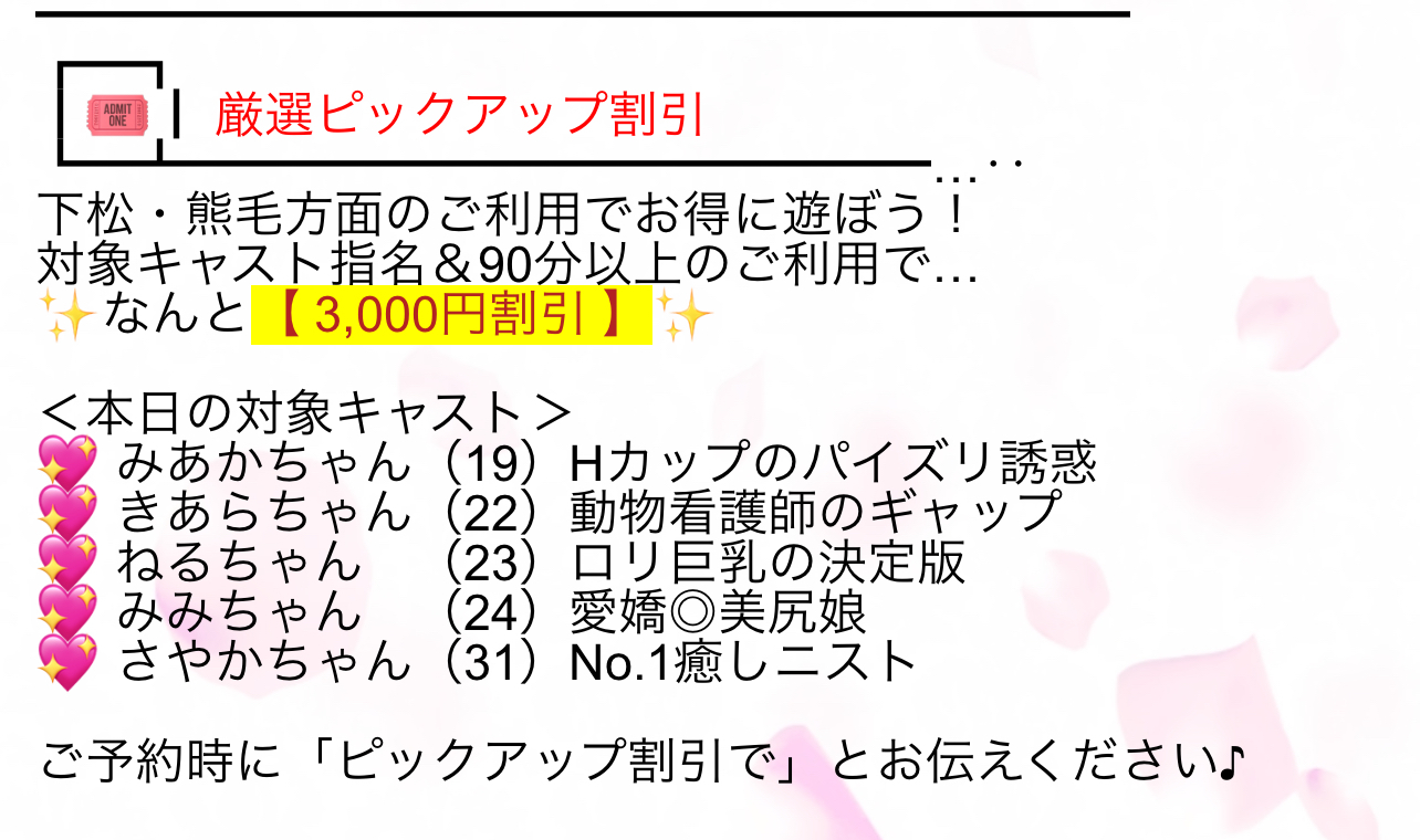 【ピックアップ割引】で、お得に遊べちゃいますよん
