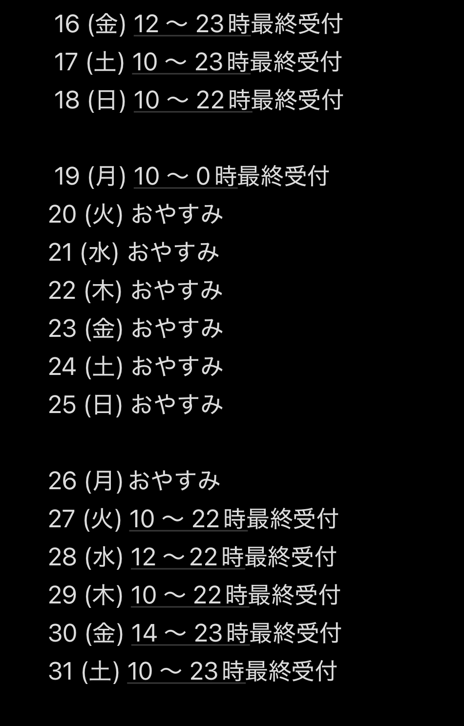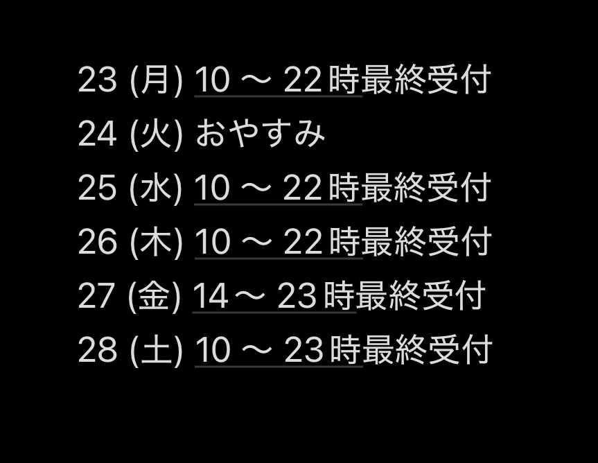 ラストを御予約くださる場合。